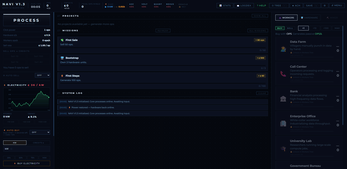 As you scale up, a crypto exchange unlocks with live price simulation. Random events shake things up. A tech tree and one-shot projects give you meaningful choices about what to boost.